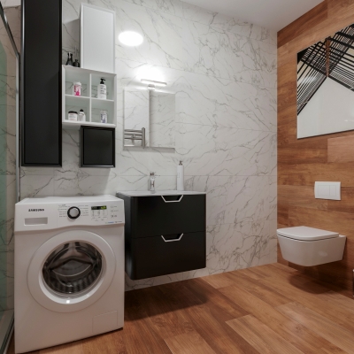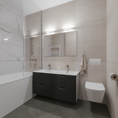 Băile complet finisate și utilate: placate cu plăci ceramice (gresie si faianță) si prevăzute cu mobilier si obiecte sanitare alese de către designerii noștri.